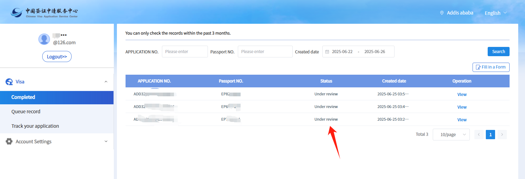 (3)您可以登录您的账号查询状态。