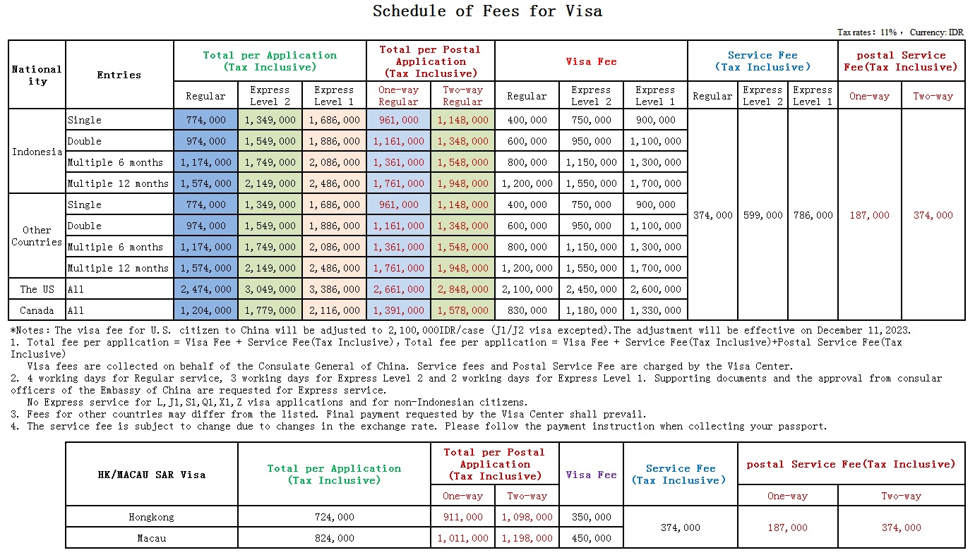 2. Schedule of Fees for visa :