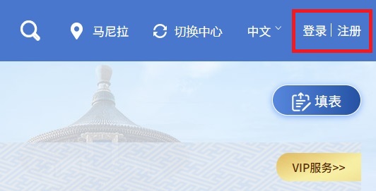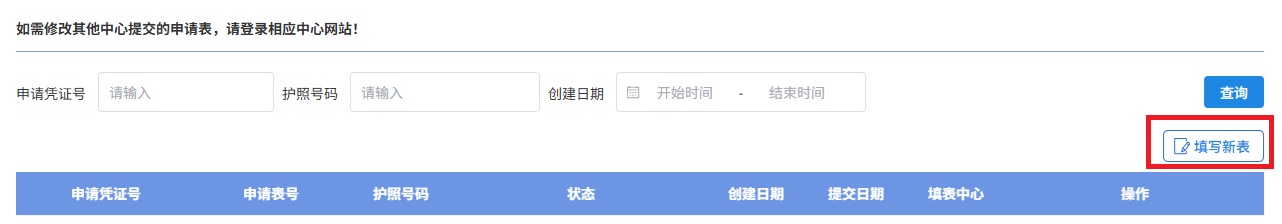 ** 如系统提示有一笔正在办理中的申请单,可在页面右上方点击已登录账号-【个人中心】查看处理,或询问您的代理机构了解申请情况。
