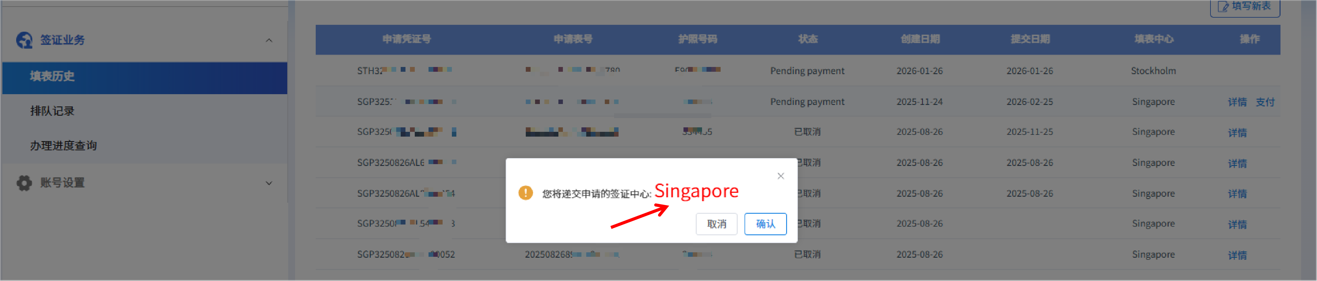 可能您在其他中心提交过申请且尚未终结,须取消该申请后,才能在新加坡中心填写表格。取消线上提交申请,请查看如何取消线上提交的申请?-常见问题