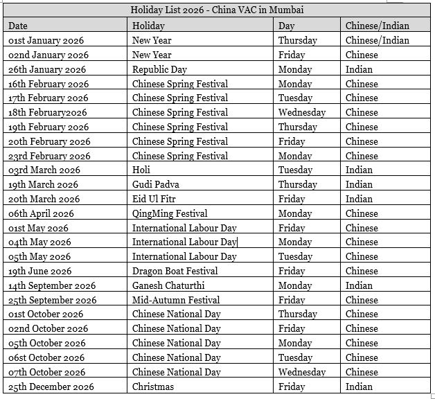 Urgent Service: Around 2 working days (Post Consulate Approval)