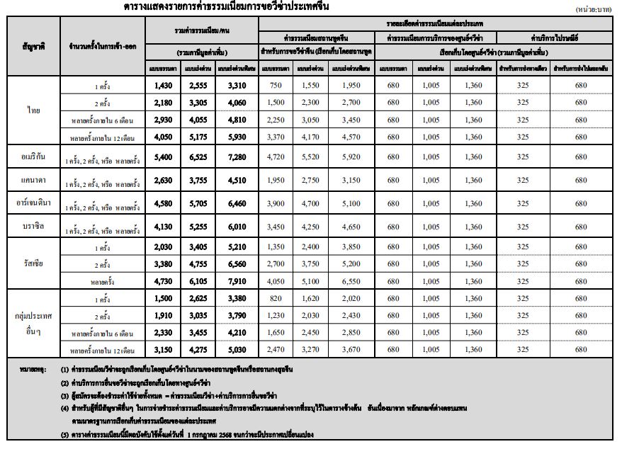 ศูนย์ฯ วีซ่าจีนรับชำระเป็นเงินสดสกุลบาทไทยเท่านั้น