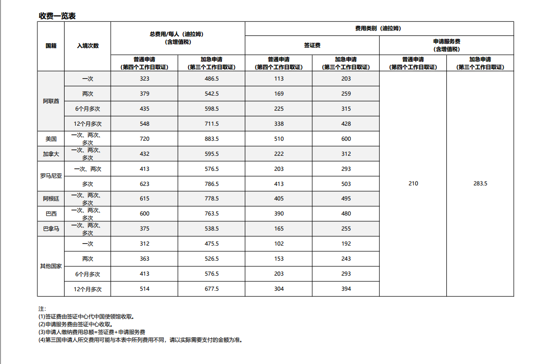 二、关于签证费及申请服务费: