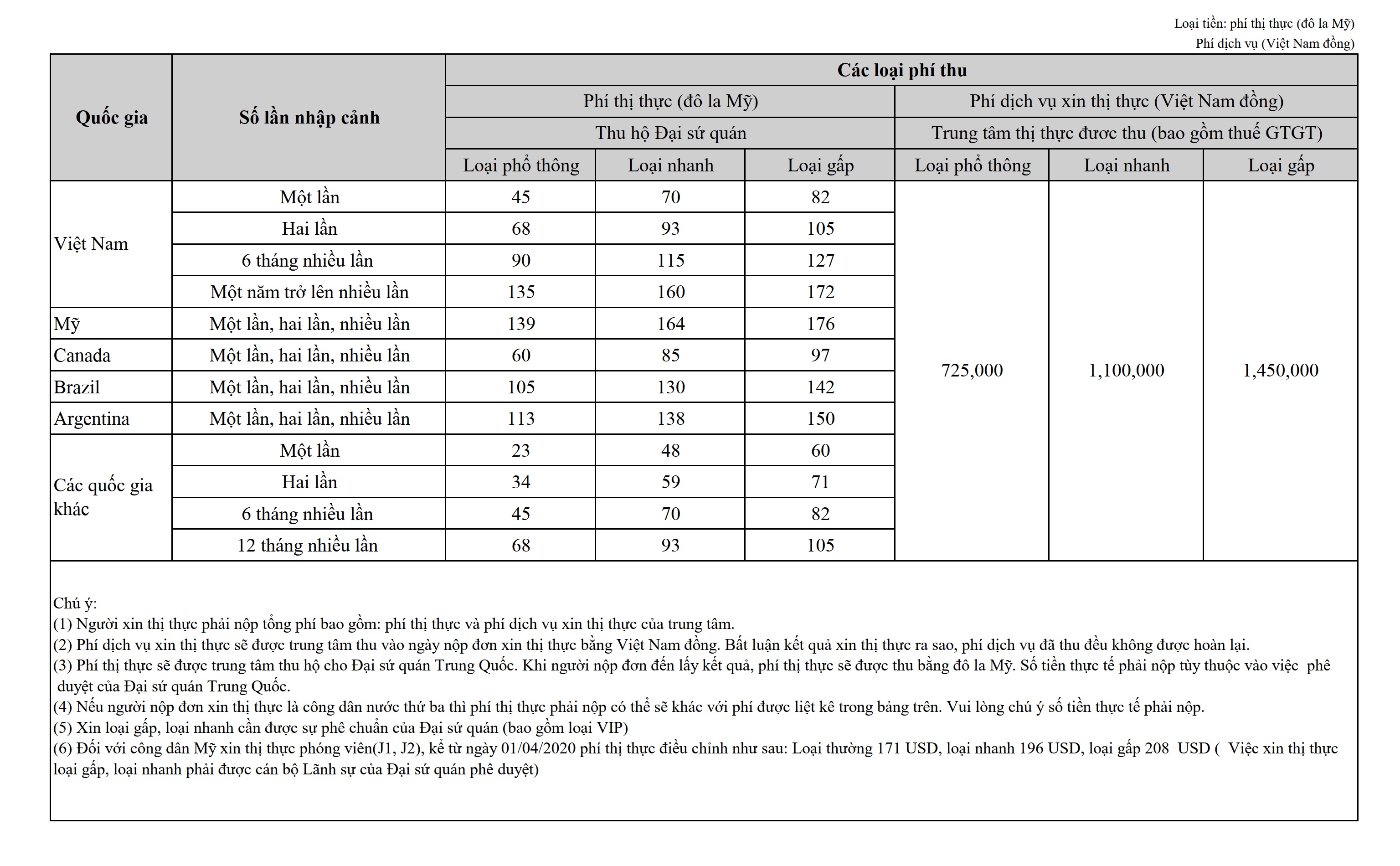 (4) Nếu người nộp đơn xin thị thực là công dân của nước thứ ba thì phí phải nộp có thể sẽ khác với phí đựơc liệt kê trong bảng trên. Vui lòng căn cứ vào số tiền thực tế phải nộp làm chuẩn.