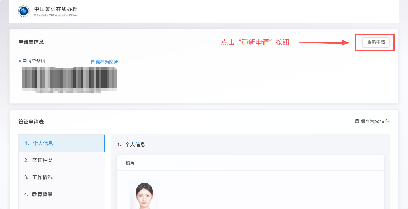 3、进入到申请详情页后,点击“重新申请”按钮。