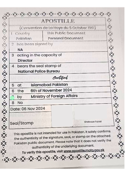 申请中国签证时,所需文件如无犯罪记录证明、银行流水账单、亲属关系证明及其他需要认证的材料,必须经巴基斯坦外交部海牙认证。
