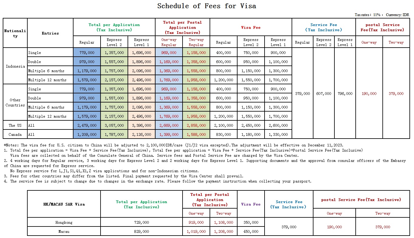 2. Schedule of Fees for visa :