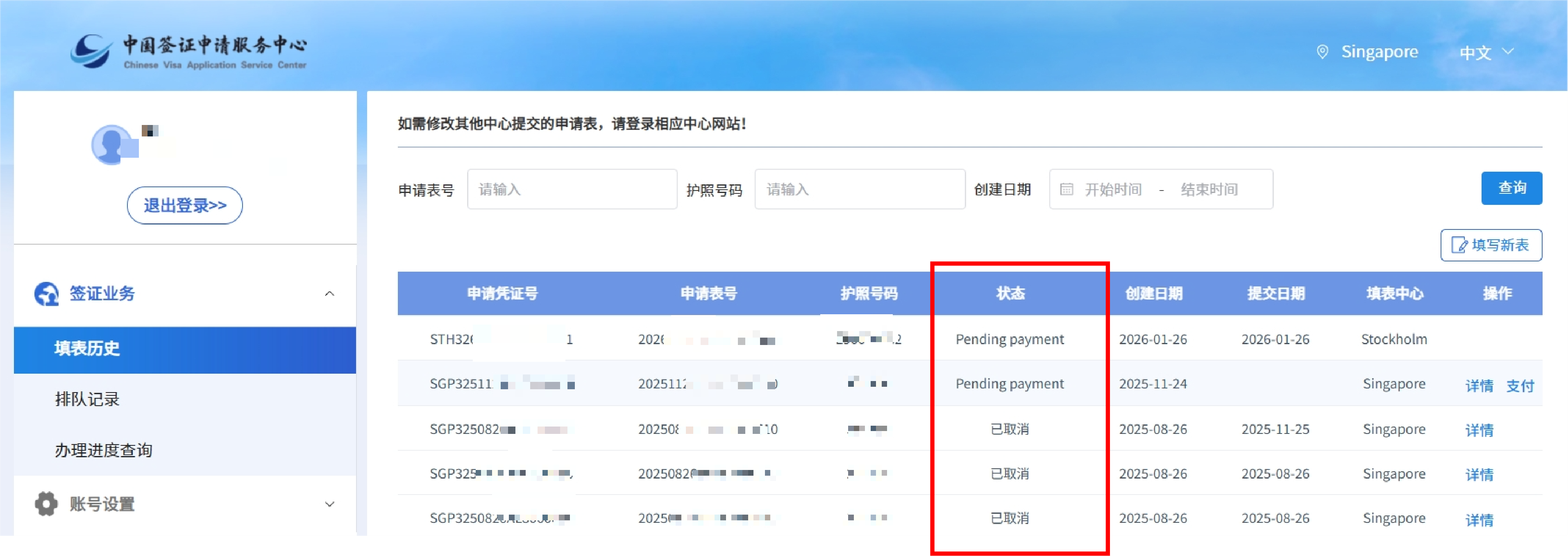 5. 进入个人中心后,页面显示该账号下已填写的申请列表。