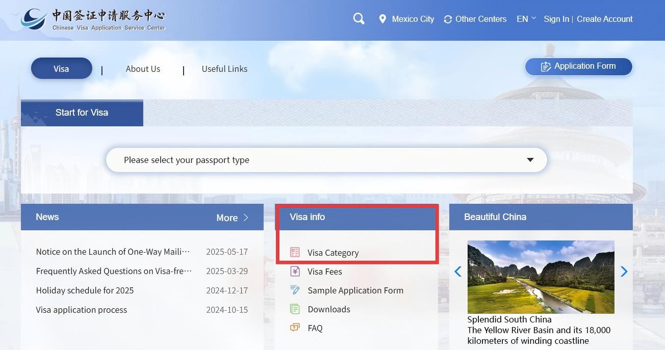 3.After logging in, you can select 【Visa Category】 under the 【Visa Info】section to view the required documents for each type of visa.