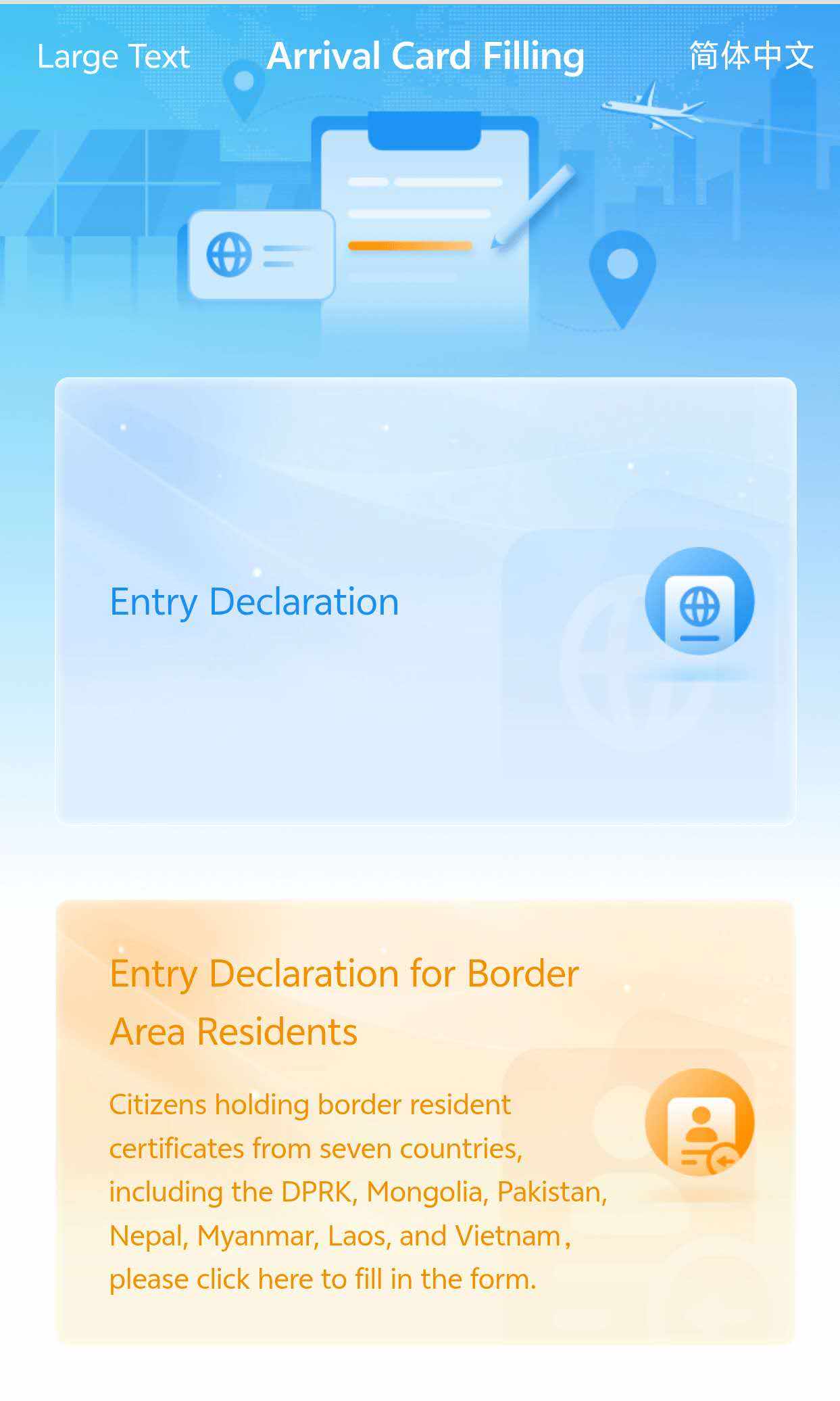 Foreigners who can not fill in the information online in advance may complete the process upon arriving at the immigration inspection site at Chinese ports of entry by scanning the QR code via mobile phone, using the smart devices on site, or filling out a paper-based Arrival Card.